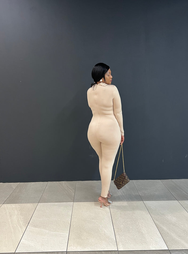 One-piece long sleeve turtleneck jumpsuit solid colour.