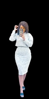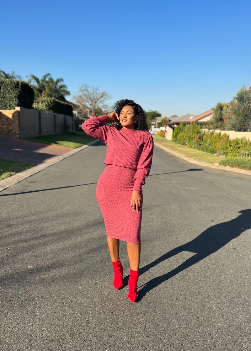 Melange Knit Wool Puffed-Sleeve Winter 2piece Set